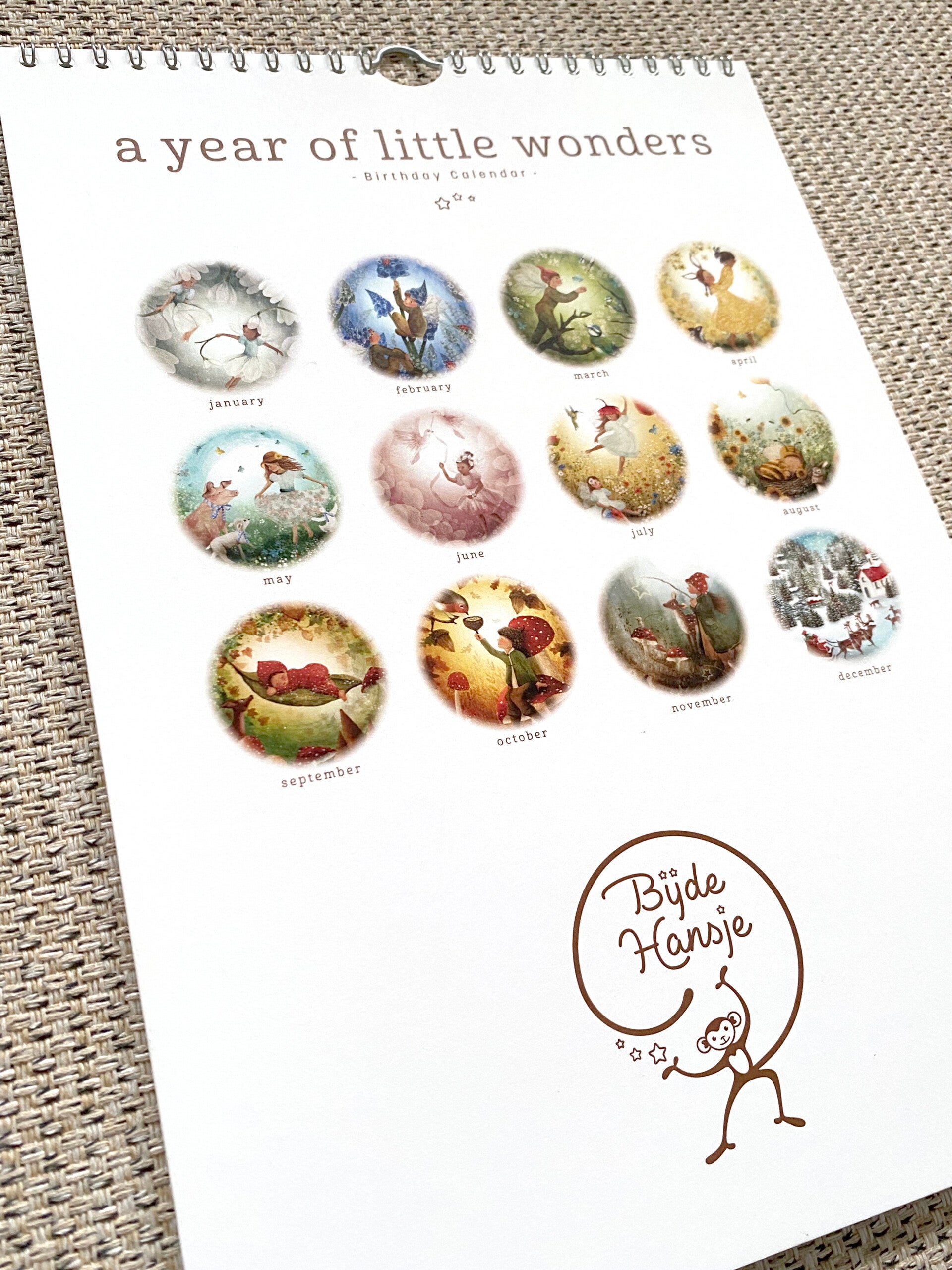 Een sprookjesachtige verjaardagskalender met dromerige illustraties in A4 formaat.